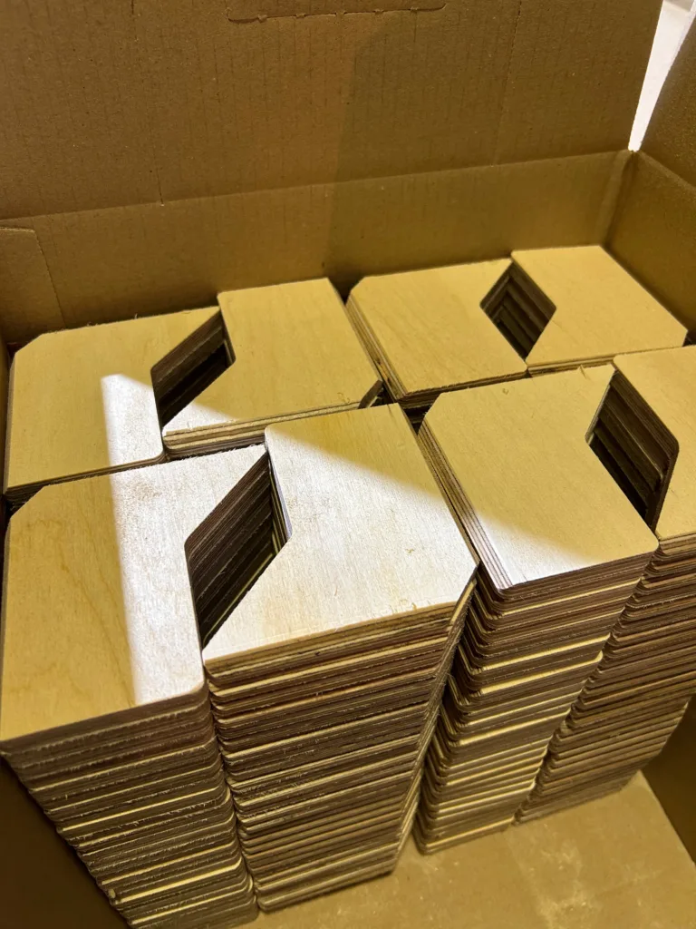 Voor een retailbedrijf in Amsterdam produceerden wij recent een serie houten onderdelen, specifiek ontwikkeld voor het assemblage- en verpakkingsproces van deze klant. De onderdelen zijn op maat gefreesd uit berken multiplex — een houtsoort die bekend staat om zijn slijtvastheid en vormstabiliteit. Dankzij de nauwkeurige afstemming op de aangeleverde specificaties, sluiten de onderdelen perfect aan bij de toepassing in het productieproces.